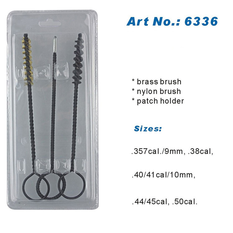 9mm Handgun Glanadh Kit Blister Pacáilte ● Méideanna atá ar fáil: 9mm.10mm..45cal.. ● Scuaba tromshaothair agus sealbhóir paiste sliotáin atá go maith chun tolladh a ghlanadh. ● Pacáistiú blister dúbailte. ● Gach an ealaín 3PCS twisted le caighdeán maith ghalbhánuithe cruach le fáinní móra. ● Éasca OEM nó bata agus lógó an chustaiméara a chur air