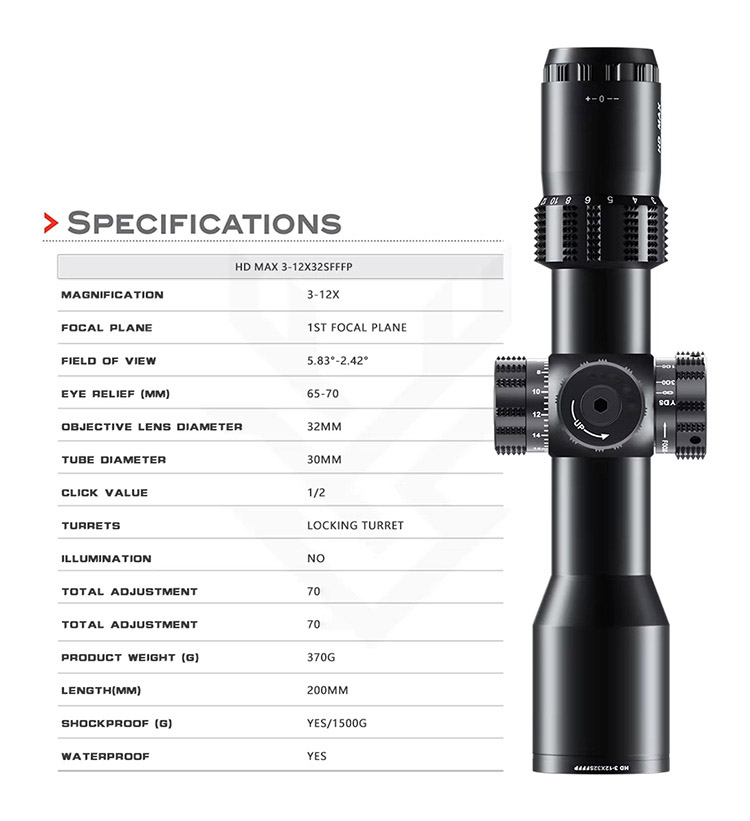MAX 3-12X32SF FFP HD Ard-lionsa Fiach Teileascóp Monacular Mórdhíola