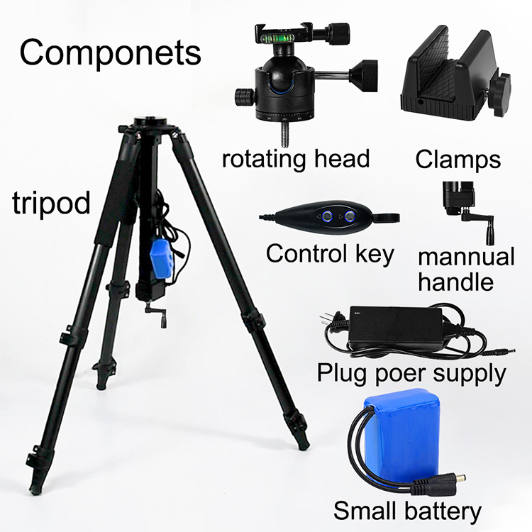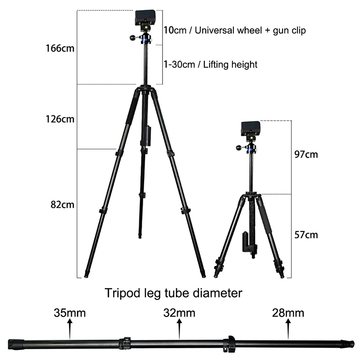 Tripod Alúmanam OEM, Sliabh Gunna CRUA, Airde Inchoigeartaithe go Leictreach, Oiriúnach do Ghníomhaíochtaí Fiach, Lámhach agus Lasmuigh