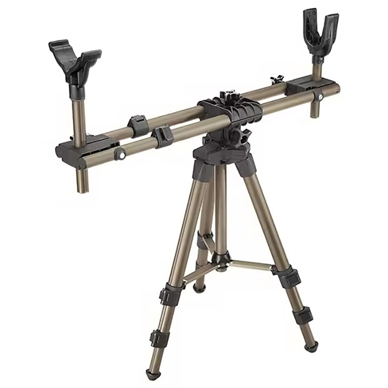 Tacaíocht Gunna Oirbheartaíochta Allamuigh Tripod Inaistrithe Fiach Slat Lámhach Teileascópach Tripod cuing Rothlach V-chruthach