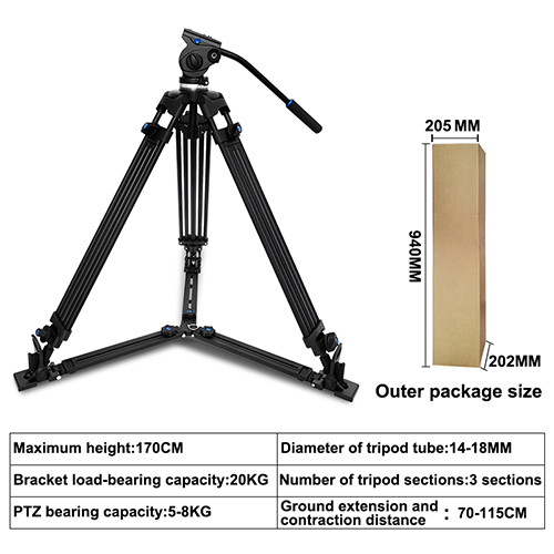 Tripod Camcorder Video Dualgas Trom Gairmiúil OEM ODM le Ceann Sreabhán