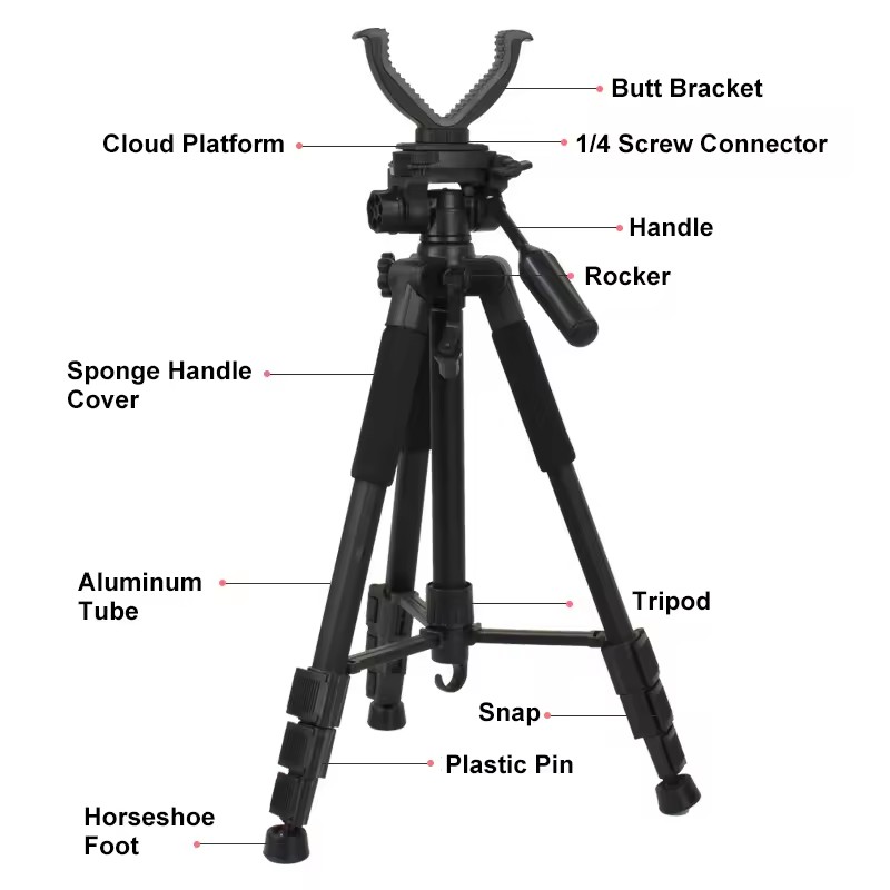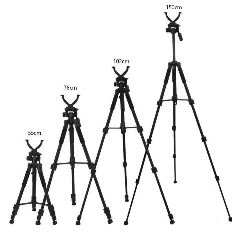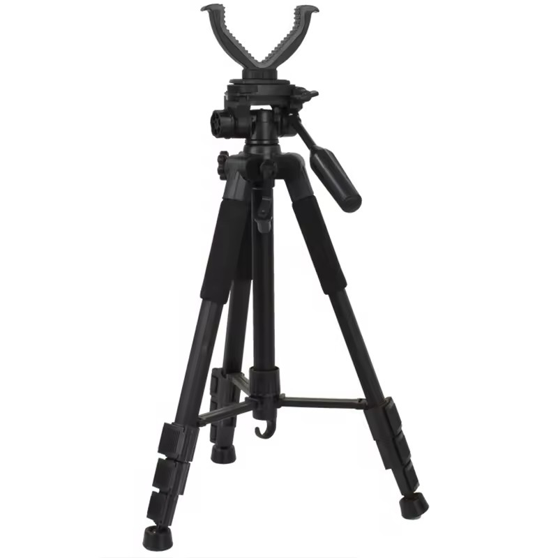 Tacaíocht Gunna Oirbheartaíochta Allamuigh Tripod Inaistrithe Fiach Slat Lámhach Teileascópach Tripod cuing Rothlach V-chruthach