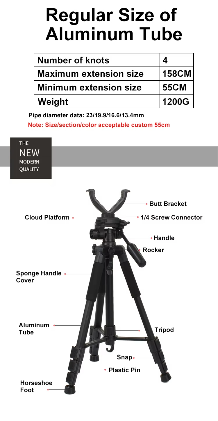 Saincheapadh Pearsanta V Cuing Rothlach Múnlaithe/ Seastán Tripod Cóimhiotal Alúmanam le haghaidh Bata Lámhach Fiach