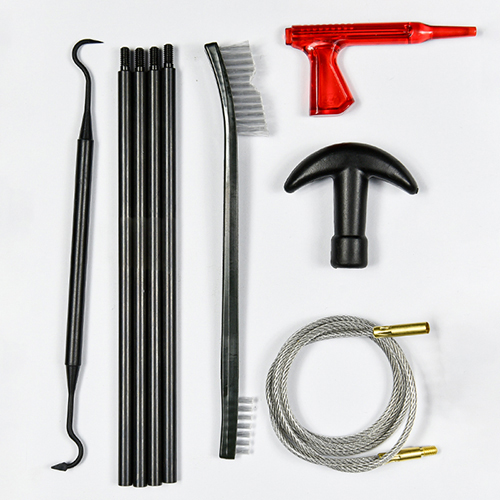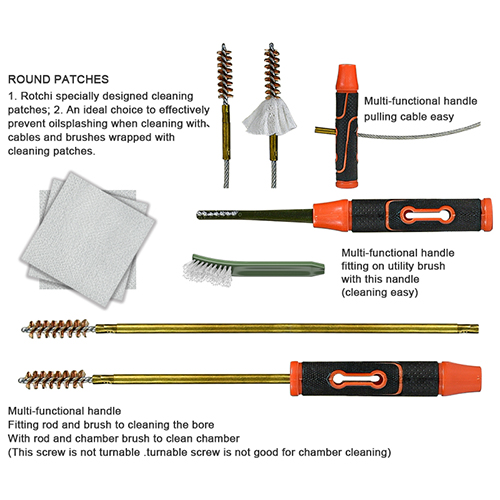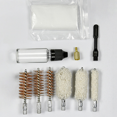 Áiríonn trealamh glantacháin gunna gráin 3 mhéid ( 12/16G, 20G, 410). Scuaba práis agus