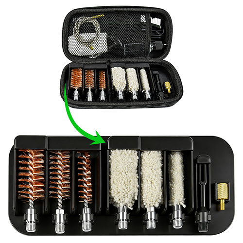 Áirítear le trealamh glantacháin gunna gráin 3 mhéid (12/16G, 20G, 410). Scuaba práis agus mapaí cadáis, 4 slata 1 calabe. Gaineamh agus dath dubh le haghaidh roghanna.