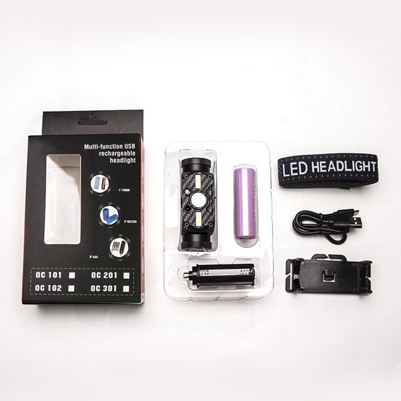Flashlight Super geal Ceannlampa LED in-athluchtaithe USB